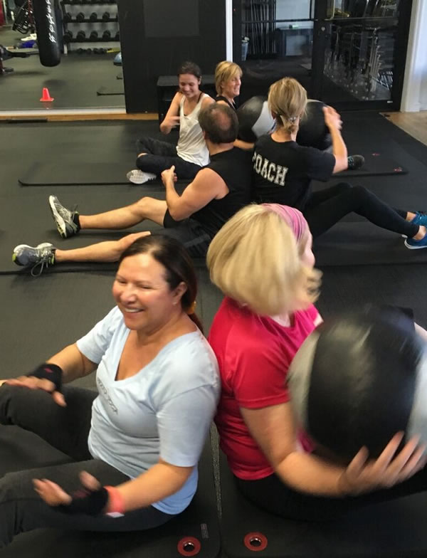 - Yoga die hards Lillian & Ruth with instructor Chris