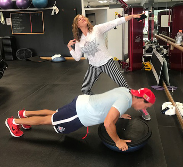 - Trainer Jen is Andy’s Bosu buddy!