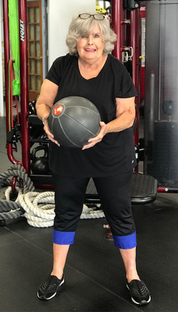 - Gwen handles the slam ball. Increase range of motion and full body exercise.