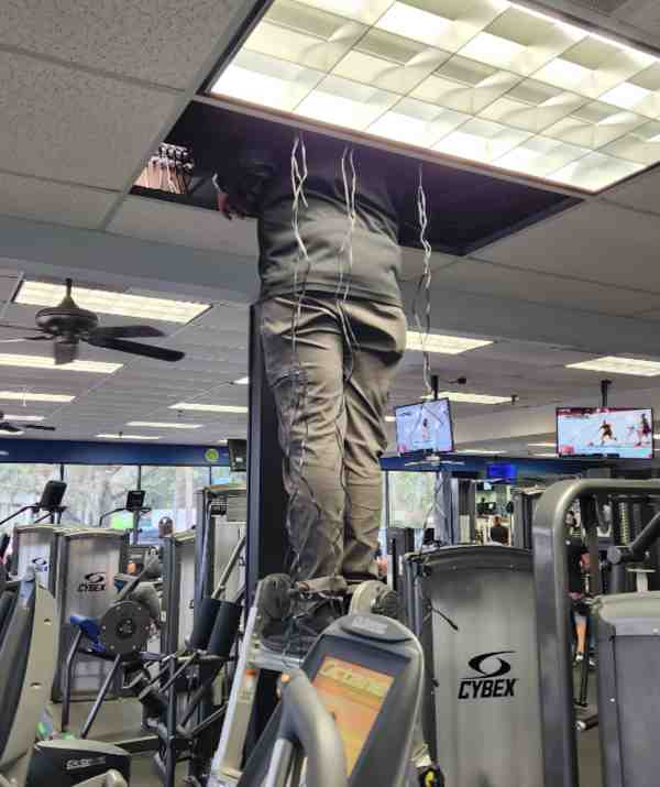 - Reconstruction of the electrical raceway housing cables and electrical outlets that supply power and TV signal to our Cardio Machines.